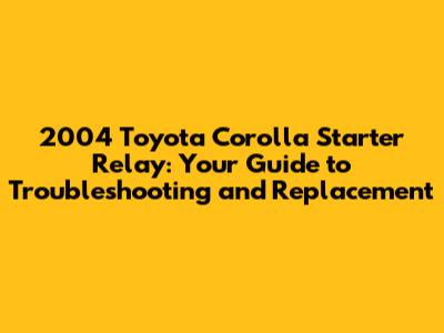 2004 Toyota Corolla Starter Relay: Troubleshooting & Replacement