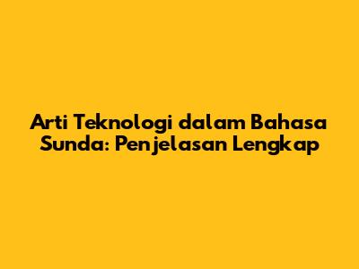 Arti Teknologi Dalam Bahasa Sunda: Penjelasan Lengkap