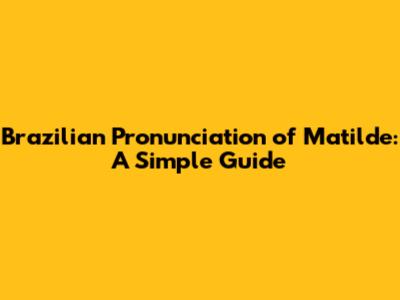 Brazilian Pronunciation Of Matilde: A Simple Guide