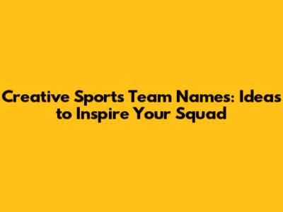 Creative Sports Team Names: Ideas To Inspire Your Squad