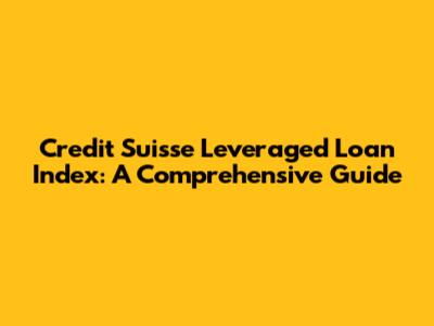 Credit Suisse Leveraged Loan Index: A Comprehensive Guide