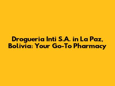 Hey guys! Are you looking for a reliable pharmacy in La Paz, Bolivia? Look no further than Drogueria Inti S.A.! This isn't just any pharmacy; it's a cornerstone of healthcare in Bolivia, with a long and rich history of serving the community. Let's dive into what makes Drogueria Inti such an important part of La Paz and why it should be your first stop for all your health needs.