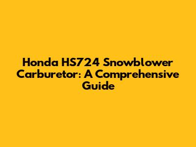 Understanding Your Honda HS724 Carburetor