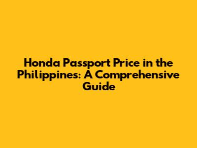 Honda Passport Price In The Philippines: A Comprehensive Guide