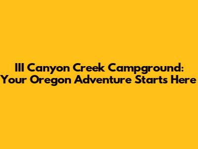 III Canyon Creek Campground: Your Oregon Adventure Starts Here