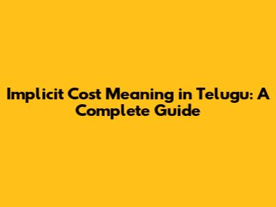 Implicit Cost Meaning In Telugu: A Complete Guide