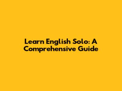 Learn English Solo: A Comprehensive Guide
