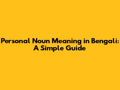 Personal Noun Meaning In Bengali: A Simple Guide