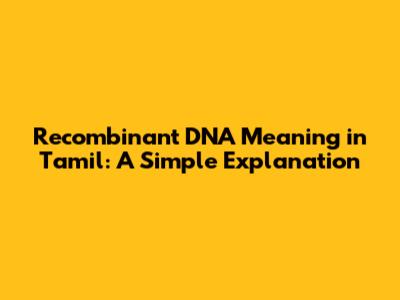Recombinant DNA: Explained In Simple Tamil