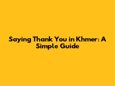 Saying Thank You In Khmer: A Simple Guide