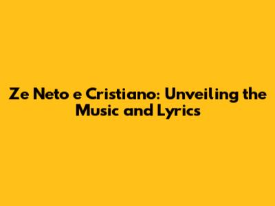 Ze Neto E Cristiano: Unveiling The Music And Lyrics