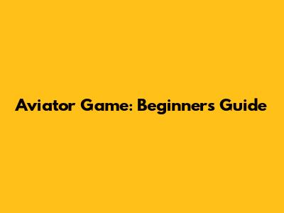 Aviator Game: Beginner's Guide