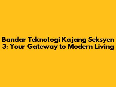 Hey everyone! Today, we're diving deep into Bandar Teknologi Kajang Seksyen 3, a place that's buzzing with opportunities and a fantastic spot to consider if you're looking at property in Malaysia. We'll be exploring everything from its location and the types of properties available to the investment potential and what it's like to actually live there. So, whether you're a seasoned property investor, a first-time homebuyer, or just curious about this area, stick around! Let's get started, shall we?