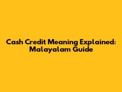 Cash Credit Meaning Explained: Malayalam Guide