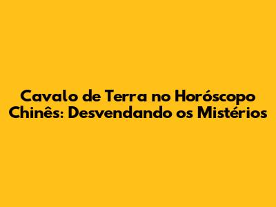 Cavalo De Terra No Horóscopo Chinês: Uma Análise Completa