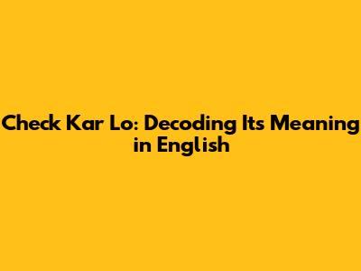 Check Kar Lo: Decoding Its Meaning In English