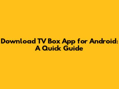 Download TV Box App For Android: A Quick Guide