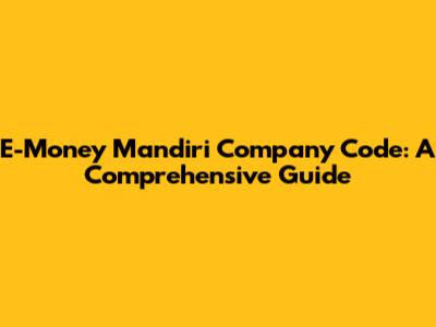 E-Money Mandiri Company Code: A Comprehensive Guide