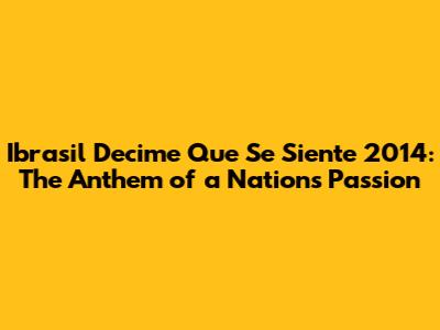 Ibrasil Decime: Argentina's Anthem Of 2014 World Cup
