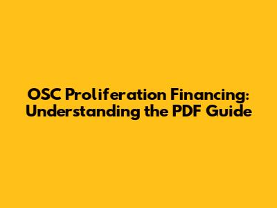 OSC Proliferation Financing: Understanding The PDF Guide