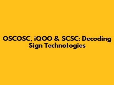 OSCOSC, IQOO & SCSC: Decoding Sign Technologies