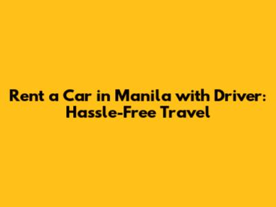Rent A Car With Driver In Manila: Hassle-Free Travel
