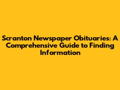 Scranton Newspaper Obituaries: Your Guide To Finding Information