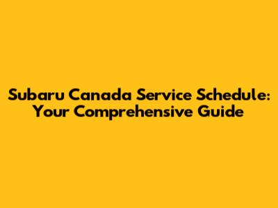 Subaru Canada Service Schedule: Your Comprehensive Guide